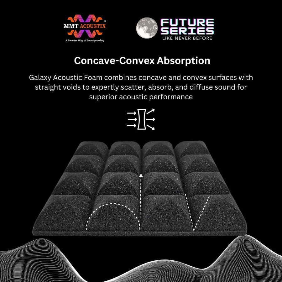 Introducing the Future Series for GEN-Z, designed for modern soundproofing needs with enhanced acoustics, innovative designs, and superior product standards. These patented and ASTM-certified panels offer powerful sound absorption with a unique concave-convex design that improves soundproofing and bass absorption. Ideal for diverse environments like studios and home theatres, they handle a broad spectrum of frequencies for professional-grade acoustic treatment. Easy to install on various surfaces, these panels combine functionality with a sleek, modern aesthetic, making them perfect for spaces that value both performance and style.