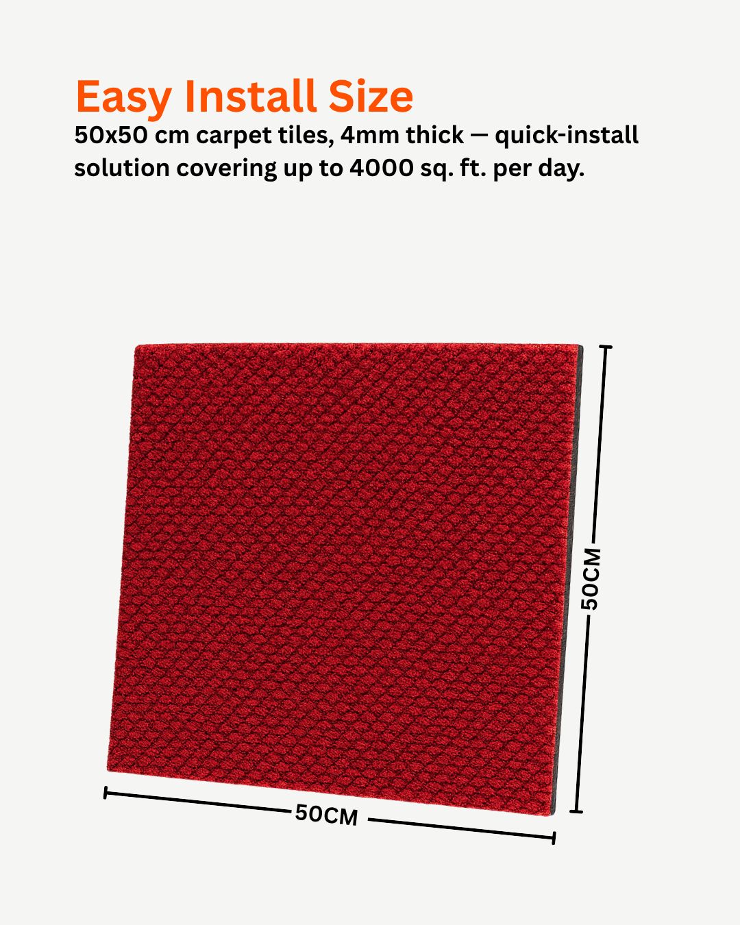Available in 20x20 inches (500x500 mm) with ±5% size tolerance. Lightweight, modular, and easy to install for elegant acoustic flooring solutions.