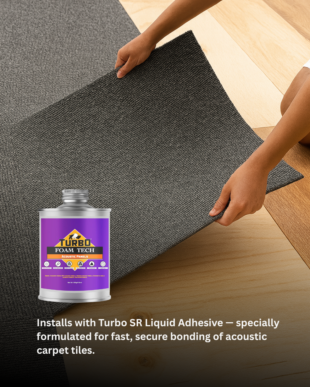Install using Turbo® SR Adhesive or carpet tile glue on clean, even surfaces. Suitable for concrete, wood, or tile floors, and allows easy tile replacement when needed.