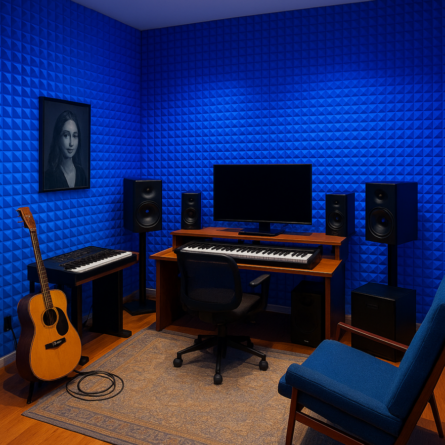 Pyramid Acoustic Foam 1”, 6x3 Ft, European Blue