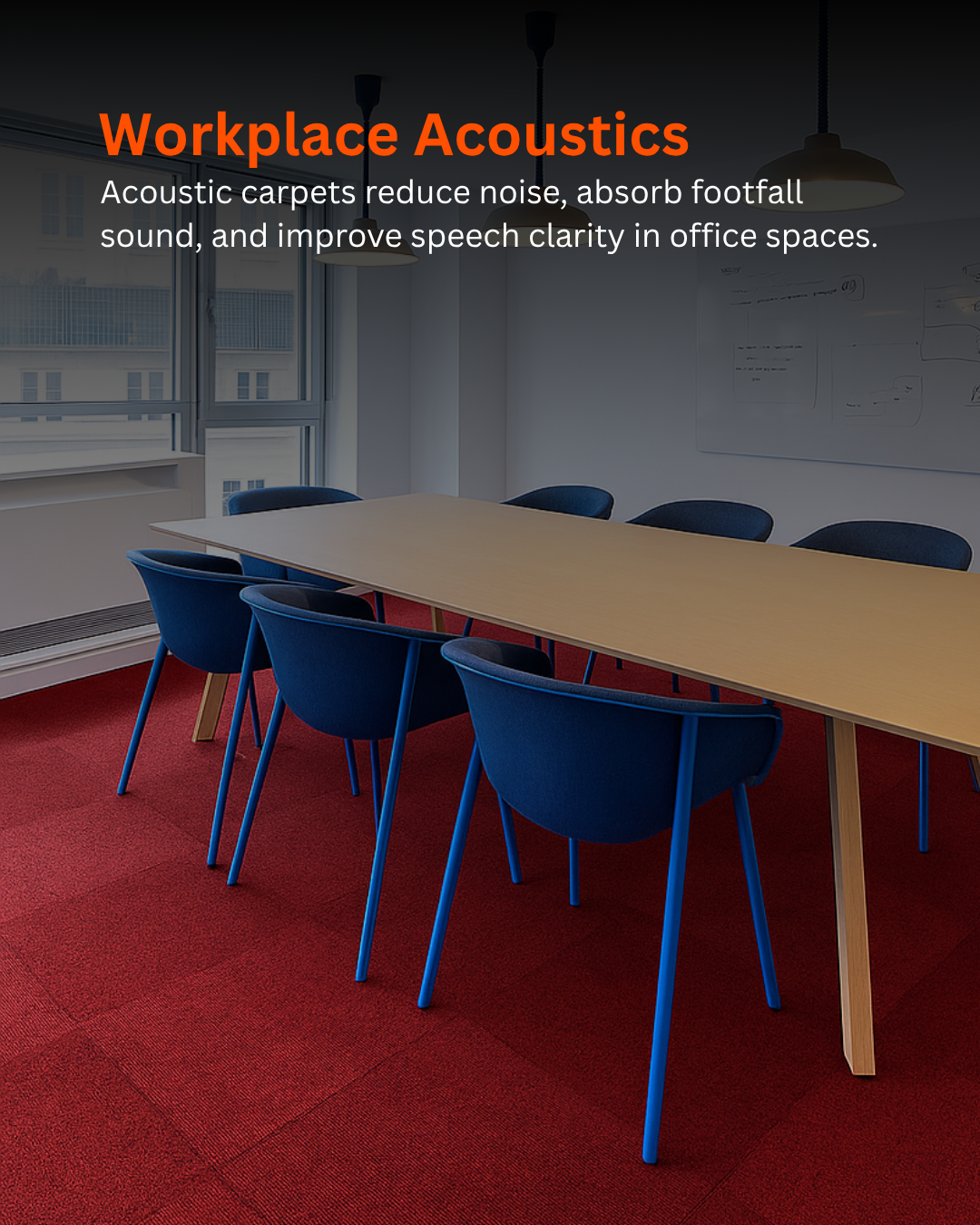Acoustic Carpet Tiles combine luxurious flooring aesthetics with effective sound absorption and comfort. Made from high-density polyester fiber with a soft felt backing, they reduce impact noise, footsteps, and sound reflections while adding warmth and elegance to interiors. Ideal for offices, hotels, home theatres, classrooms, and luxury homes, they enhance both style and acoustic performance.