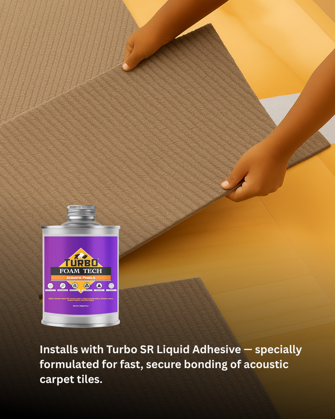 Install using Turbo® SR Adhesive or carpet tile glue on clean, even surfaces. Suitable for concrete, wood, or tile floors, and allows easy tile replacement when needed.