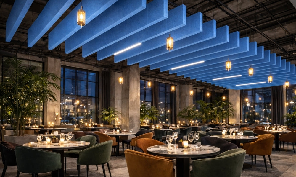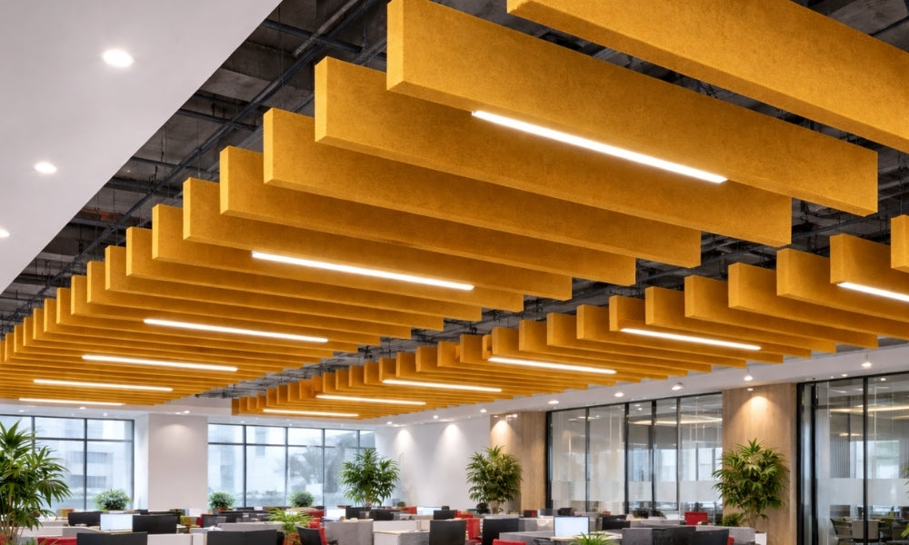 Installed vertically from ceilings, baffles expose more surface area to sound energy. This orientation increases absorption efficiency compared to flat ceiling panels. Proper spacing enhances performance across wider areas.