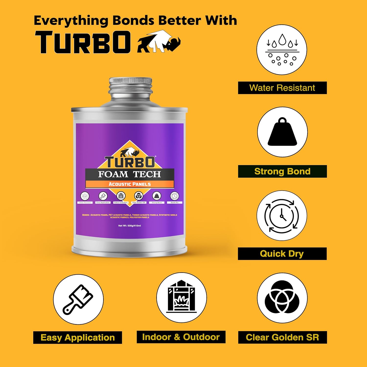 Turbo® SR Adhesive is a high-strength synthetic rubber-based adhesive designed for bonding acoustic foams, SoundBlanket® MLV, BassBloc®, and insulation materials. It provides quick tack, durable hold, and professional-grade performance on wood, metal, concrete, and gypsum surfaces.