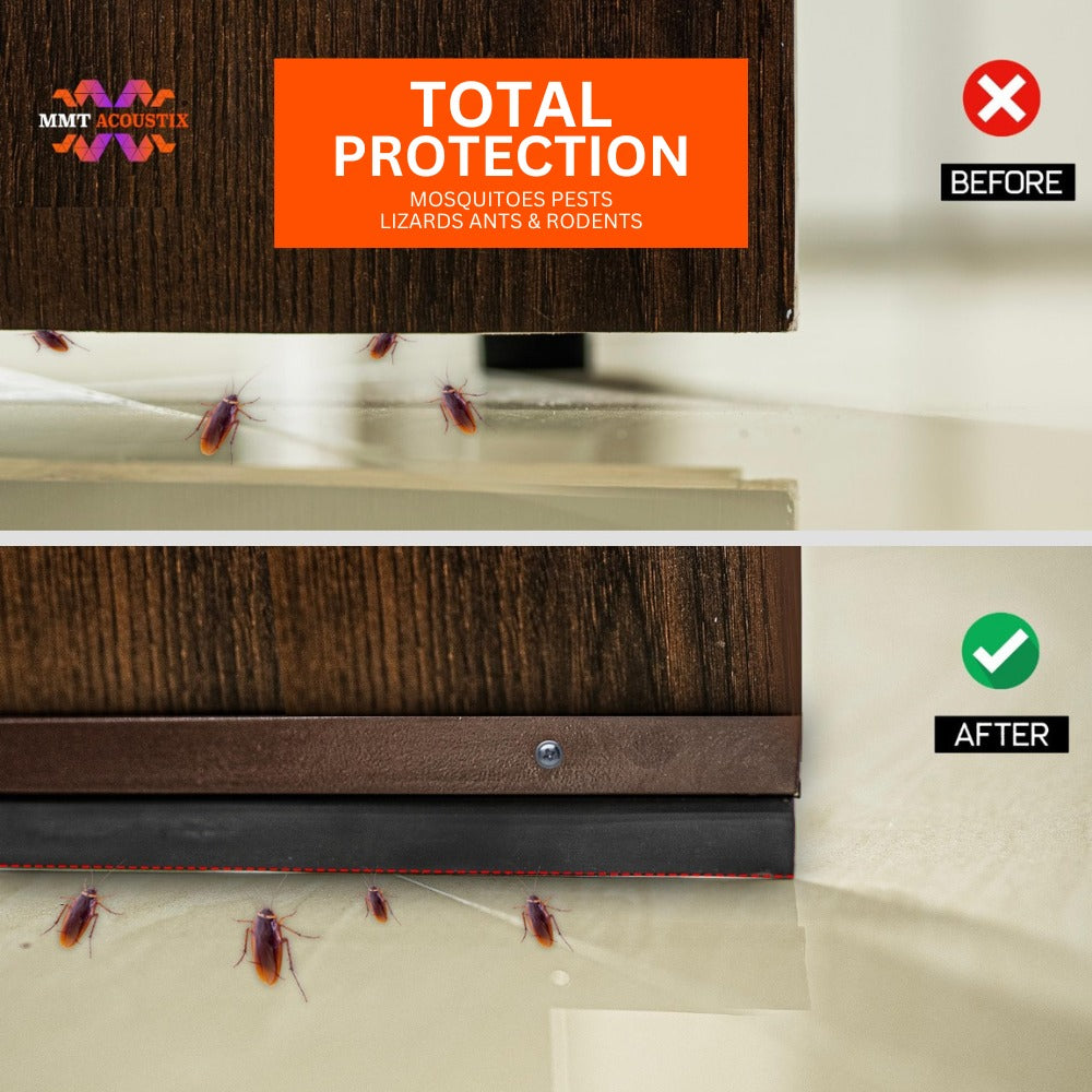 Metal Bottom Door Seal by MMT Acoustix® is a premium-grade acoustic and thermal barrier designed to seal the gap beneath doors for superior soundproofing and insulation. Built with a high-quality aluminum body and a durable rubber gasket, it effectively blocks noise, dust, insects, light, and air leakage. Perfect for home theatres, studios, offices, and hotel rooms, this seal enhances privacy and overall acoustic comfort.