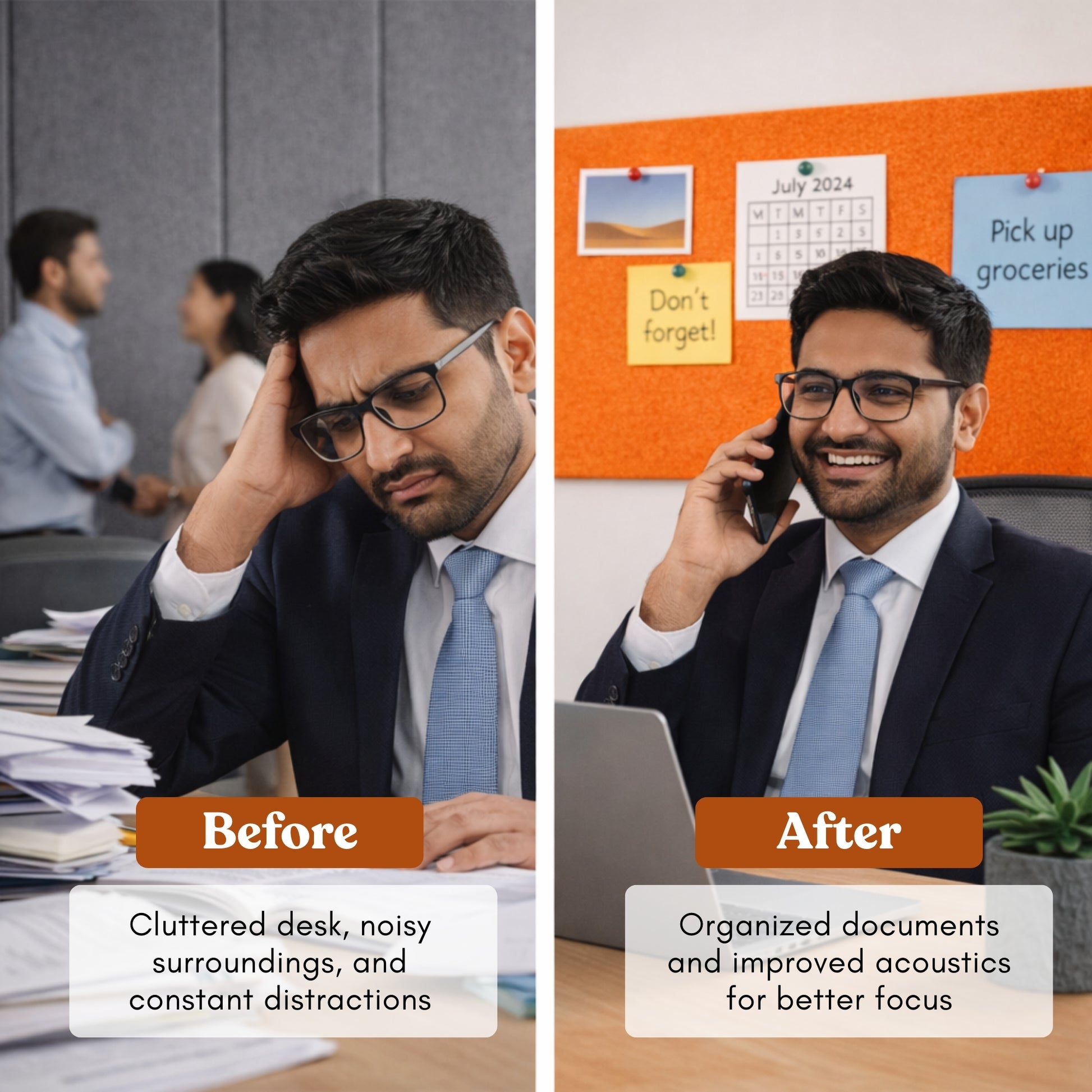 High-density felt helps absorb sound reflections and soften echo. Creates a quieter, more focused environment for meetings and calls. Ideal for offices, home workspaces, and collaborative areas