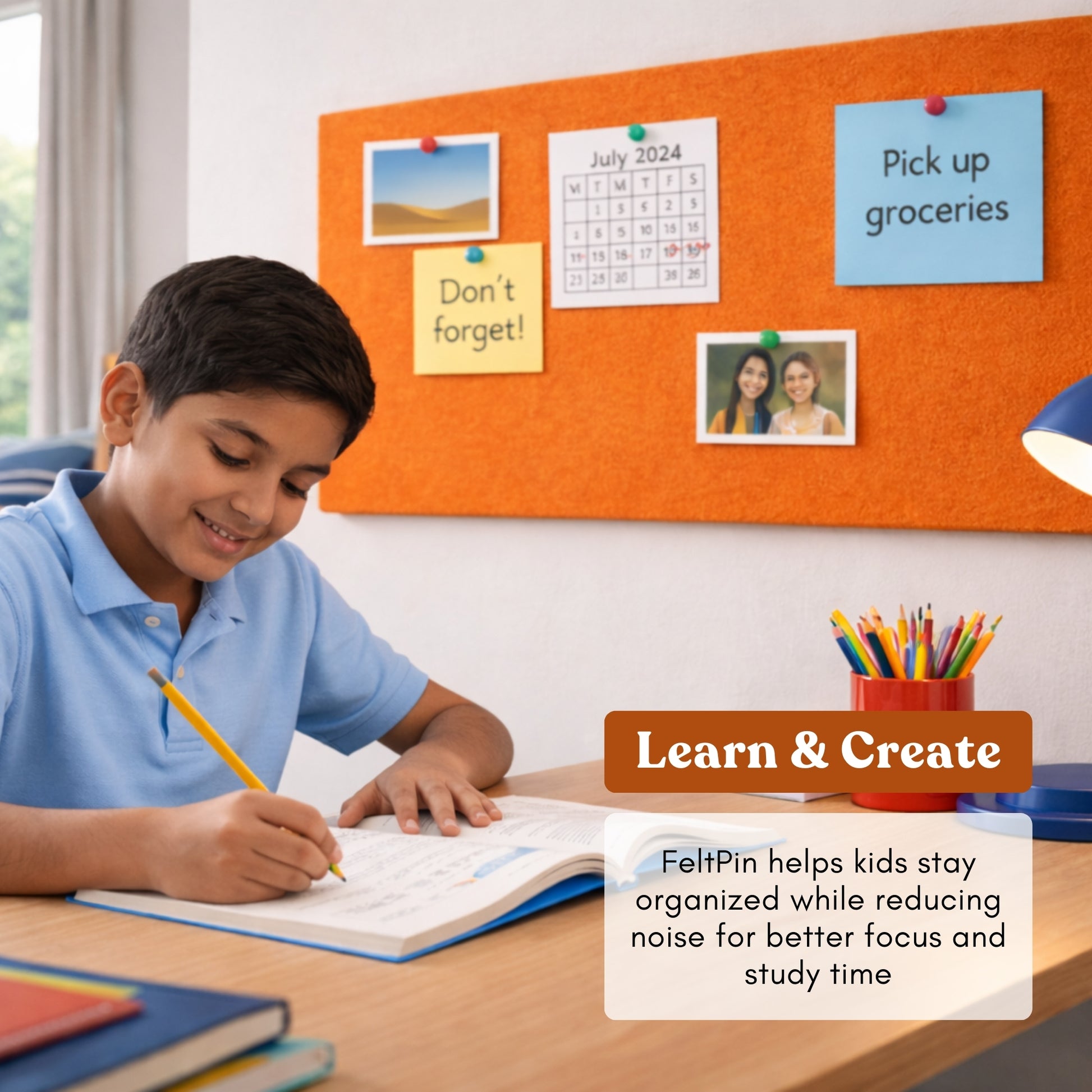 A premium felt bulletin board designed to organize notes, photos, and reminders with style.