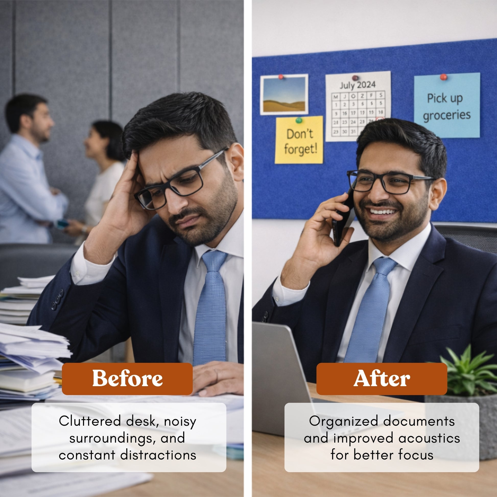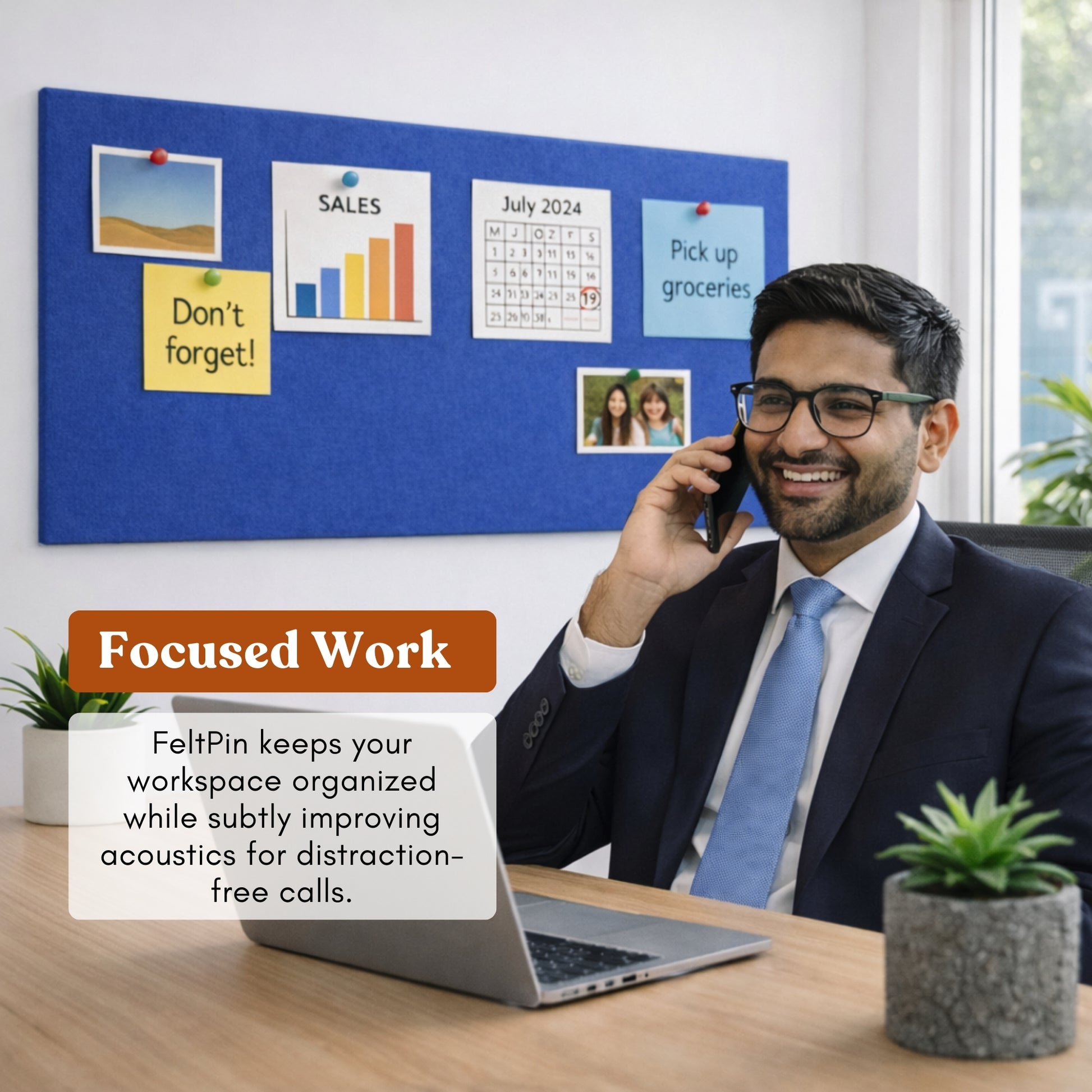 High-density felt helps absorb sound reflections and soften echo. Creates a quieter, more focused environment for meetings and calls. Ideal for offices, home workspaces, and collaborative areas