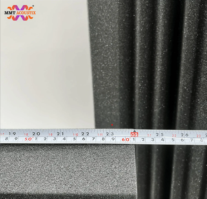 Mega 200 Acoustic Foam Corner Bass Trap measures 23x11 inches with a 7-inch depth, crafted from 50 kg/m³ high-density open-cell acoustic foam for superior bass absorption. Size tolerance is ±5%, and minor shade variations are natural to polyurethane foam.