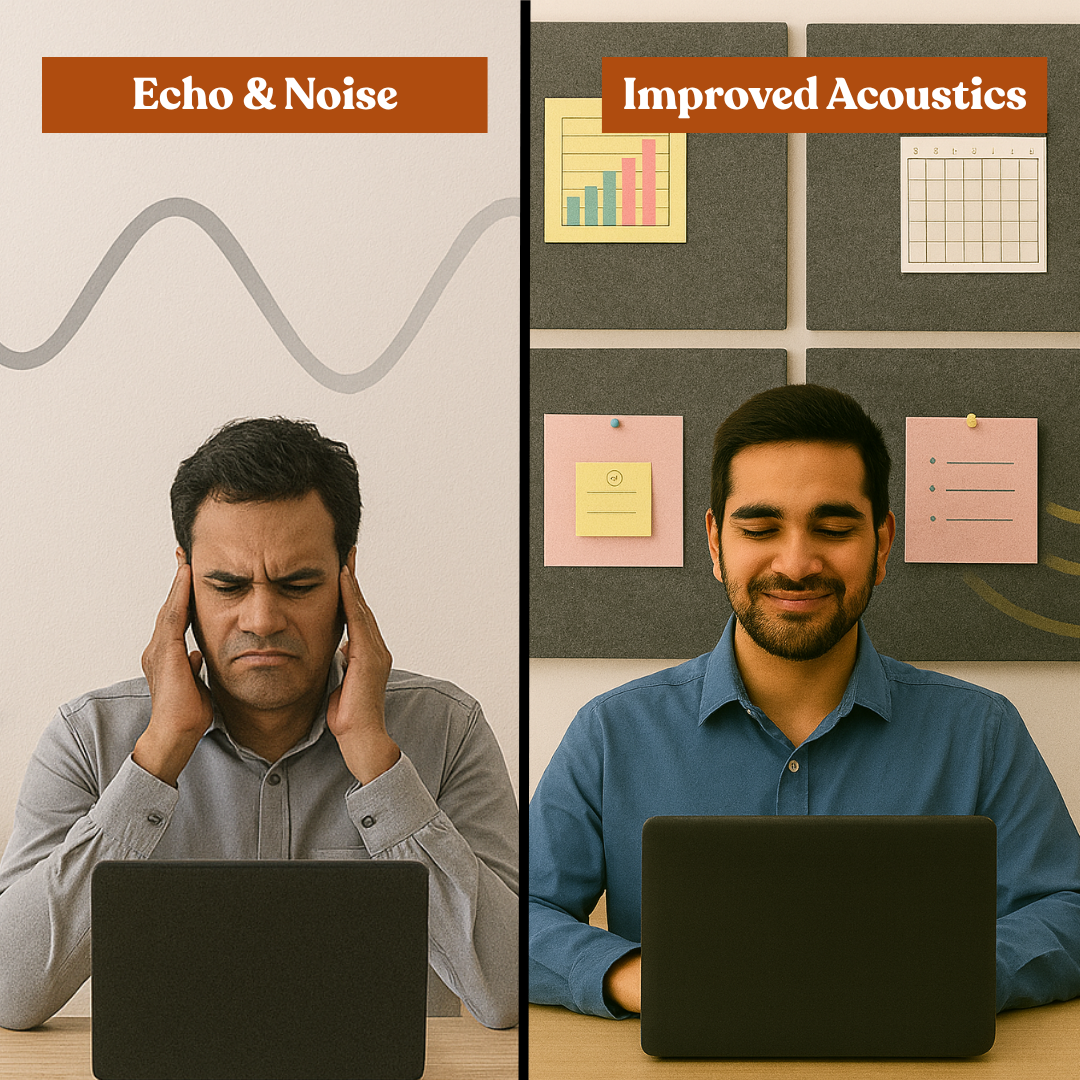 High-density felt helps absorb sound reflections and soften echo. Creates a quieter, more focused environment for meetings and calls. Ideal for offices, home workspaces, and collaborative areas