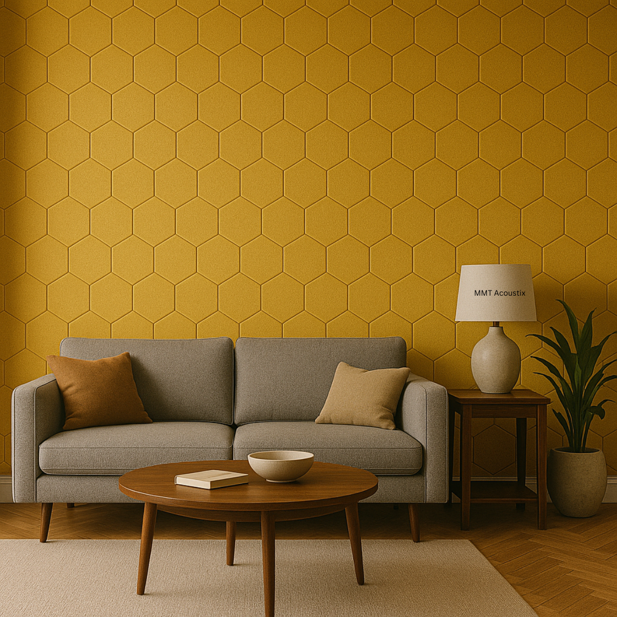 HexaFelt Bevelled Hexagon Acoustic Panels combine modern geometry with premium sound absorption, crafted from 10mm high-density polyester felt for both acoustic and aesthetic excellence. Their bevelled edges and modular hexagon design allow creative wall compositions that add visual depth while improving sound clarity and reducing echo. Perfect for living areas, offices, classrooms, studios, home theatres, and luxury interiors, HexaFelt transforms walls into functional art.