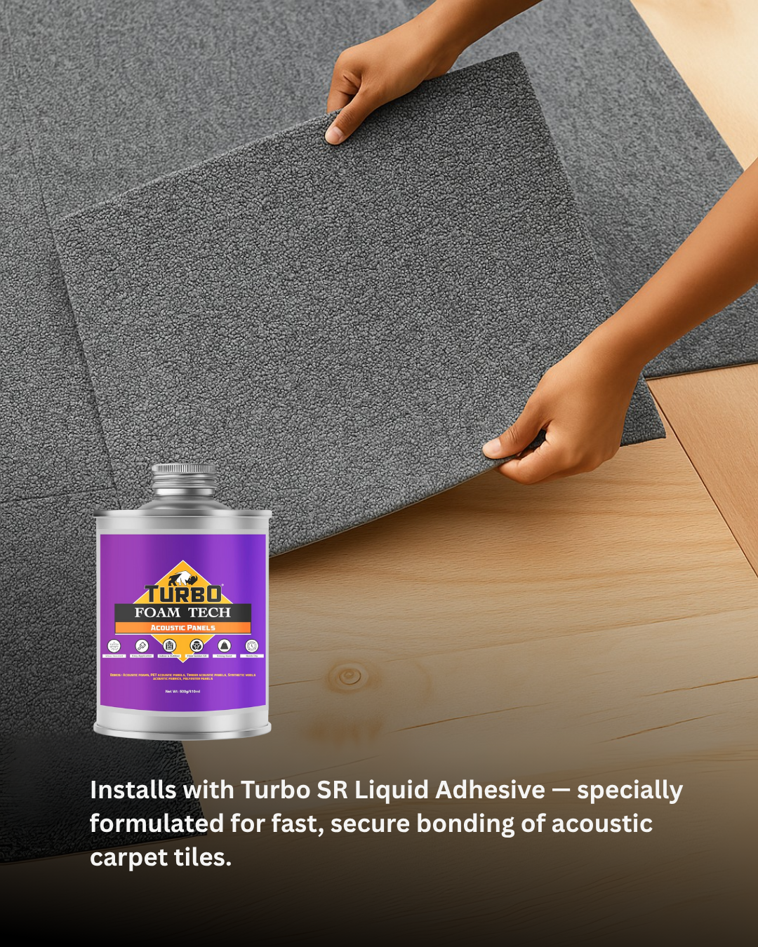 Install using Turbo® SR Adhesive or carpet tile glue on clean, even surfaces. Suitable for concrete, wood, or tile floors, and allows easy tile replacement when needed.