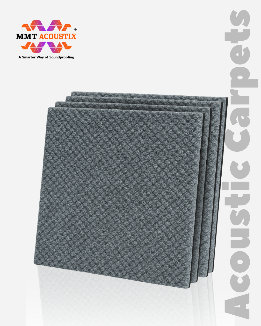 Acoustic Carpet Tiles combine luxurious flooring aesthetics with effective sound absorption and comfort. Made from high-density polyester fiber with a soft felt backing, they reduce impact noise, footsteps, and sound reflections while adding warmth and elegance to interiors. Ideal for offices, hotels, home theatres, classrooms, and luxury homes, they enhance both style and acoustic performance.