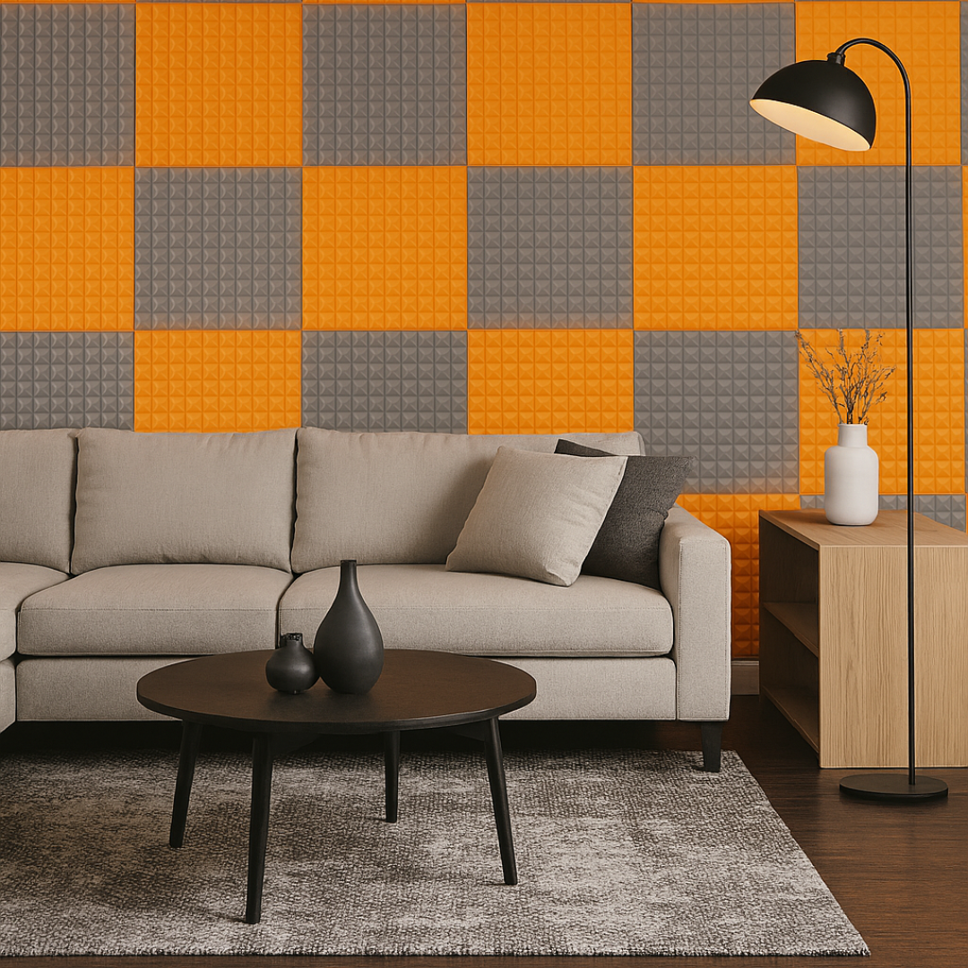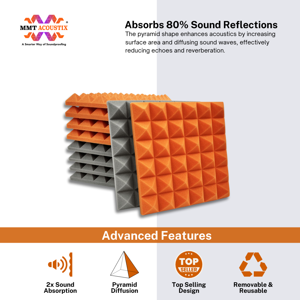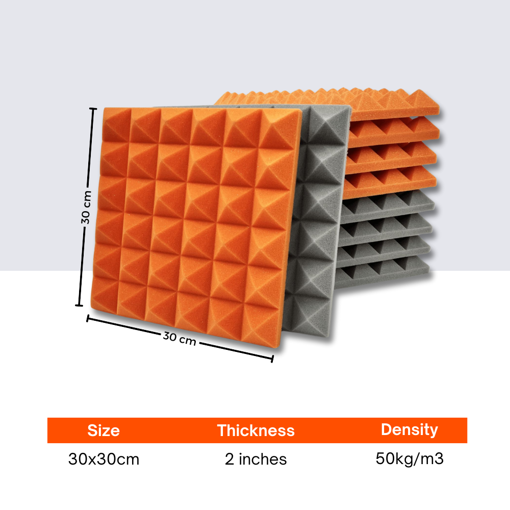 Pyramid Acoustic Foam 2”, 1x1 Ft, Stone White + MMT Orange