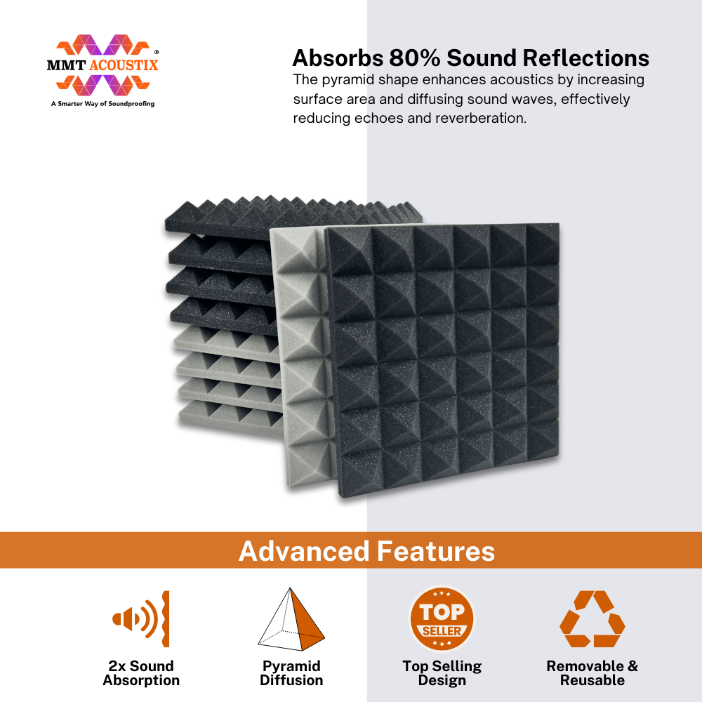 Pyramid Acoustic Foam 2”, 1x1 Ft, Charcoal + Stone White