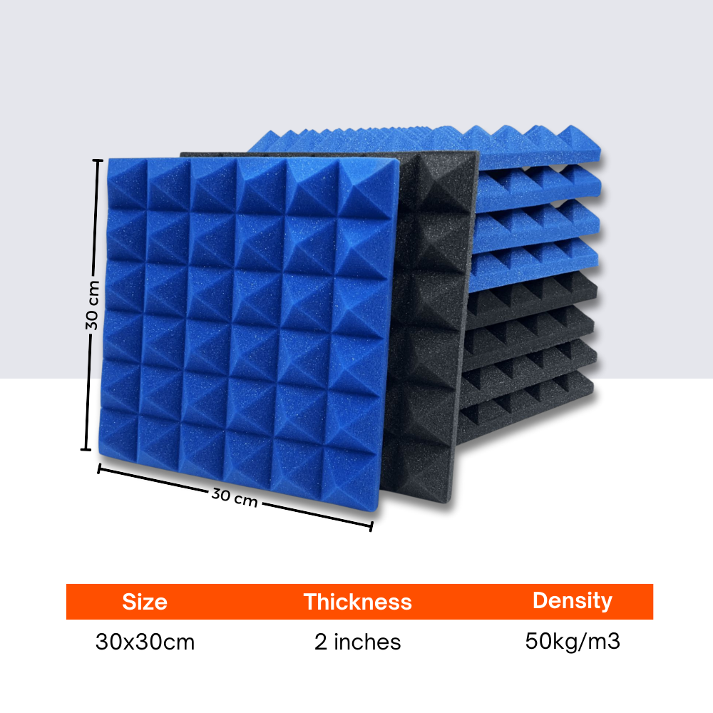 Pyramid Acoustic Foam 2”, 1x1 Ft, Charcoal + European Blue