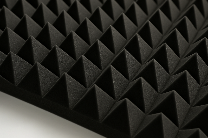 High-density acoustic foam absorbs incident sound energy by converting it into low-level heat through friction within its open-cell structure