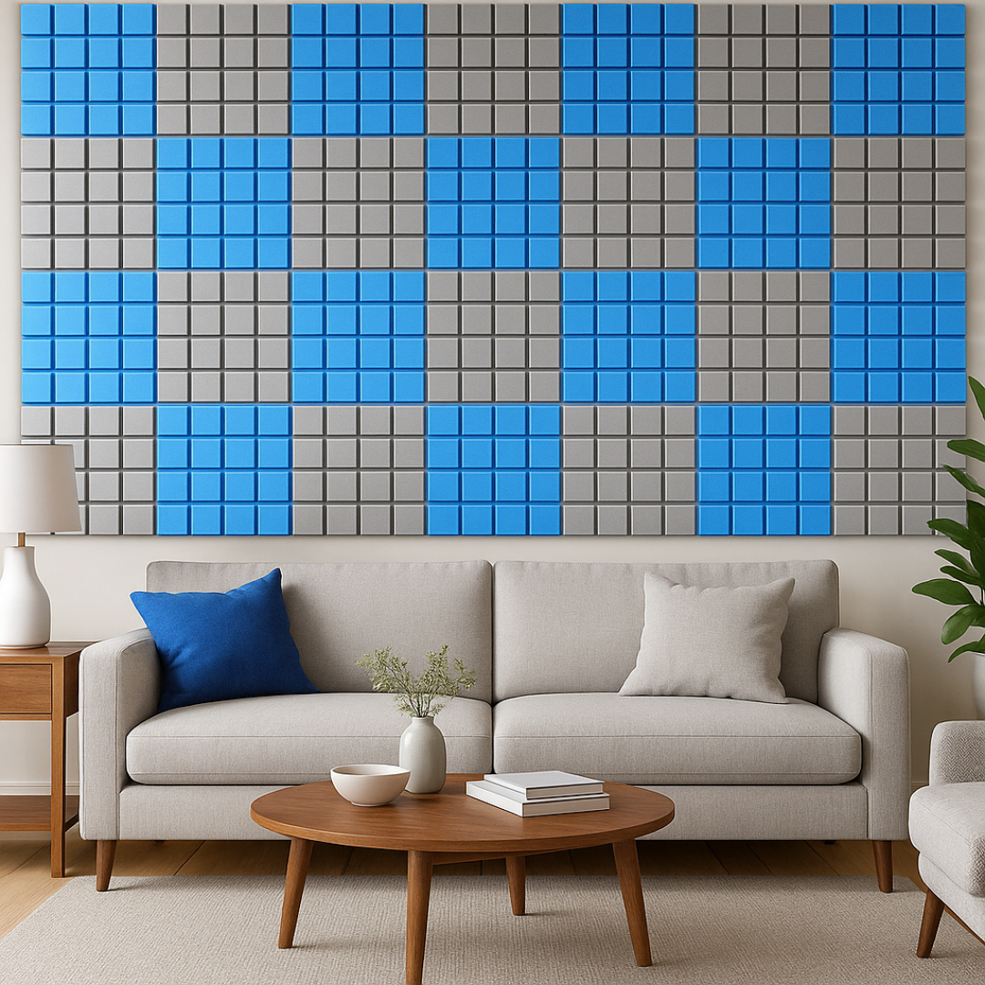 Turbo Acoustic Foam 1x1 ft, Stone White + European Blue