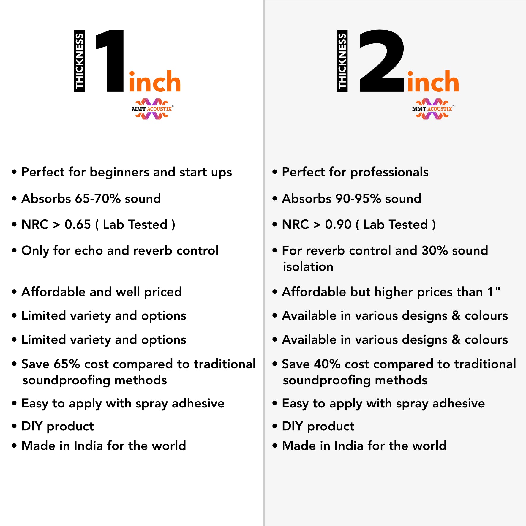 MMT Acoustix transformed our studio with their high-performance panels and expert guidance.The difference in sound clarity was instant.Their premium build quality truly stands out in the market.